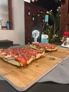 - Előétel: Kemencés kenyérlángos házi füstölt sonkával, kolbásszal és sajt válogatással